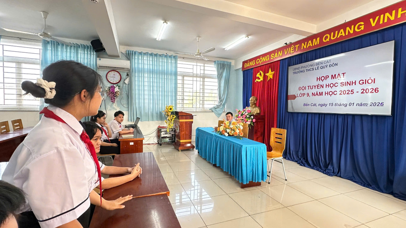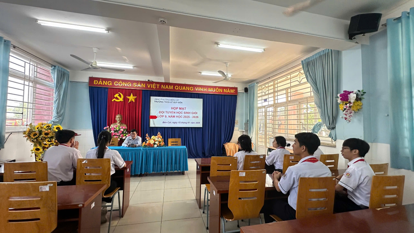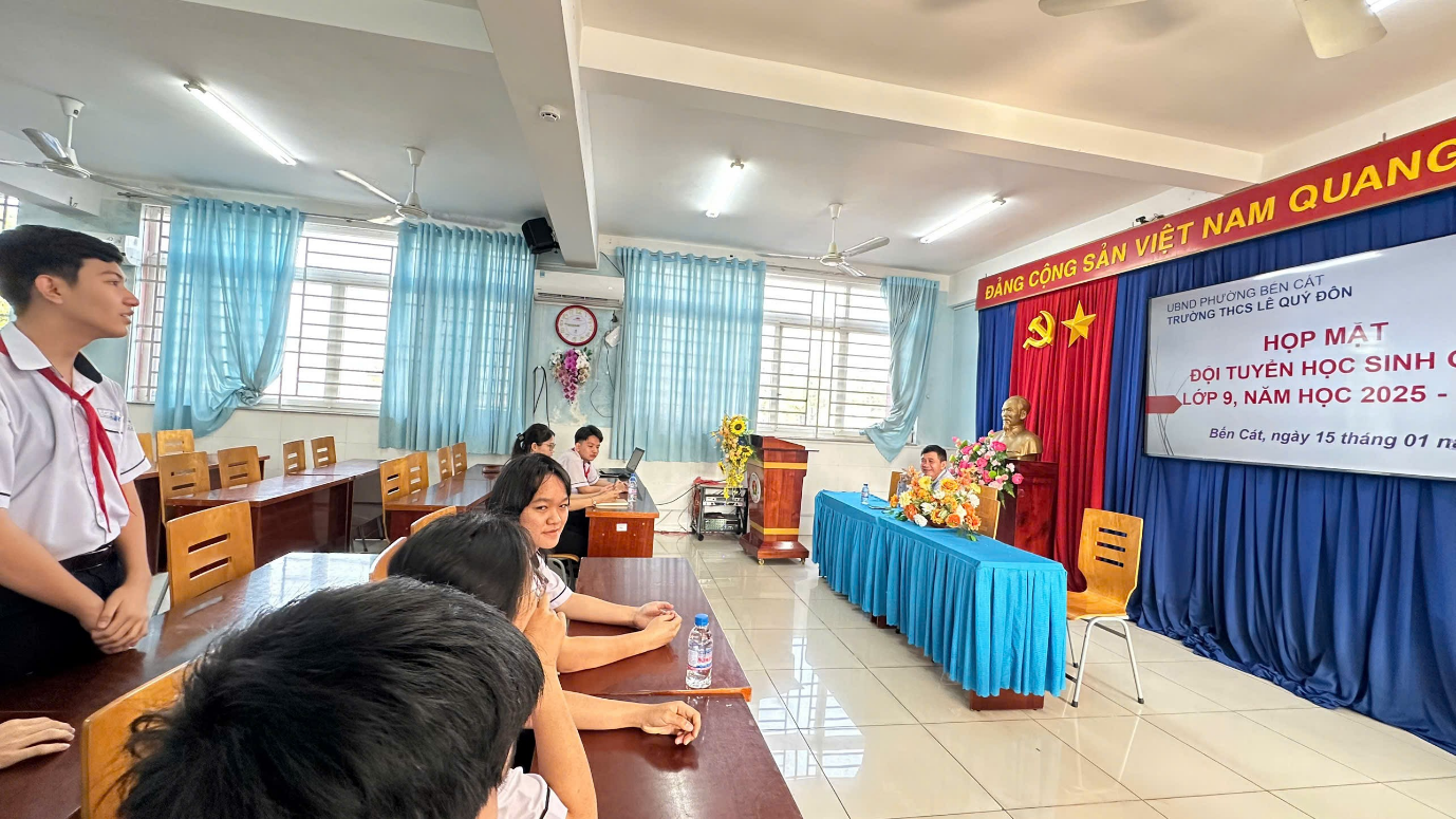 Nhằm kịp thời nắm bắt tình hình học tập, tâm tư, nguyện vọng của học sinh trong quá trình ôn luyện học sinh giỏi, sáng ngày 15/01/2026, Ban Giám hiệu Trường THCS Lê Quý Đôn đã tổ chức buổi gặp mặt đội tuyển học sinh giỏi lớp 9 năm học 2025–2026.