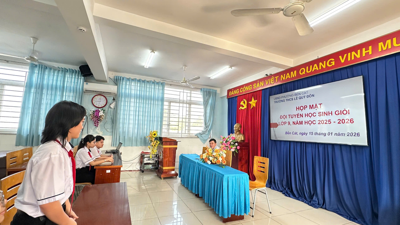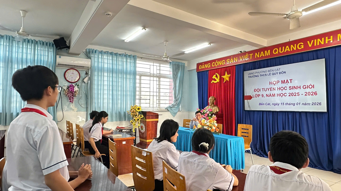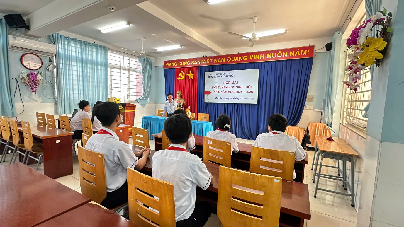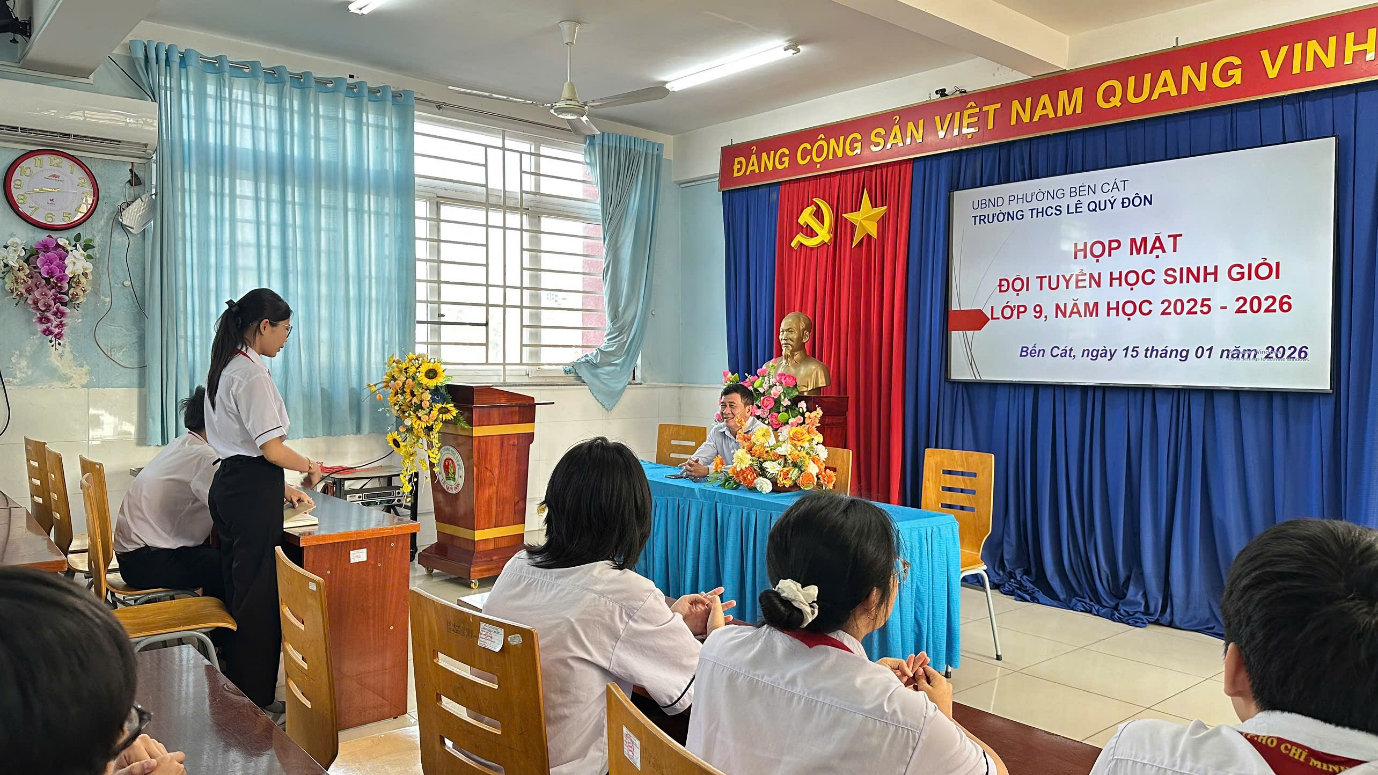 Nhằm kịp thời nắm bắt tình hình học tập, tâm tư, nguyện vọng của học sinh trong quá trình ôn luyện học sinh giỏi, sáng ngày 15/01/2026, Ban Giám hiệu Trường THCS Lê Quý Đôn đã tổ chức buổi gặp mặt đội tuyển học sinh giỏi lớp 9 năm học 2025–2026.